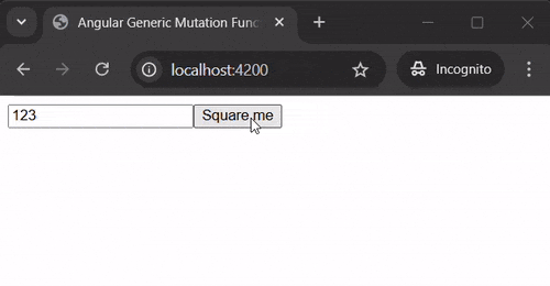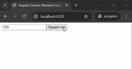 <button (click)="triggerMutation(input.value)">Square me</button>The result should be like this: